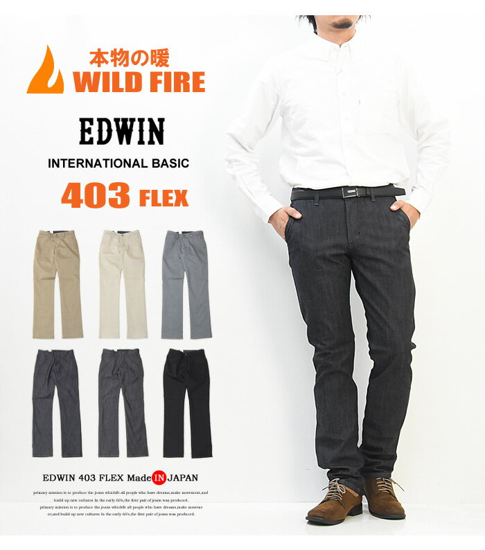 EDWIN エドウィン 403 WILD FIRE ワイルドファイア トラウザーパンツ レギュラーストレート 暖かい 動きやすい 気持ちいい 日本製 メンズ ジーンズ E43WFS