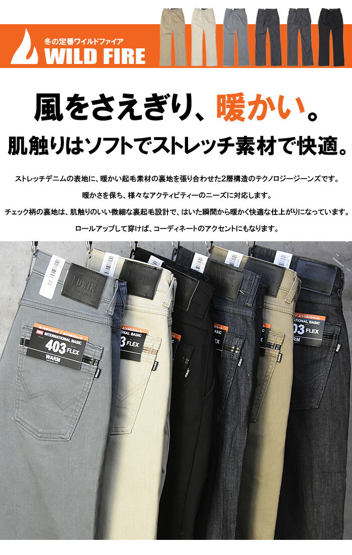 EDWIN エドウィン WILD FIRE ワイルドファイア 暖かい パンツ ボトムス 2層構造 ストレッチ レギュラー ストレート 裏地 起毛 E403WF-6