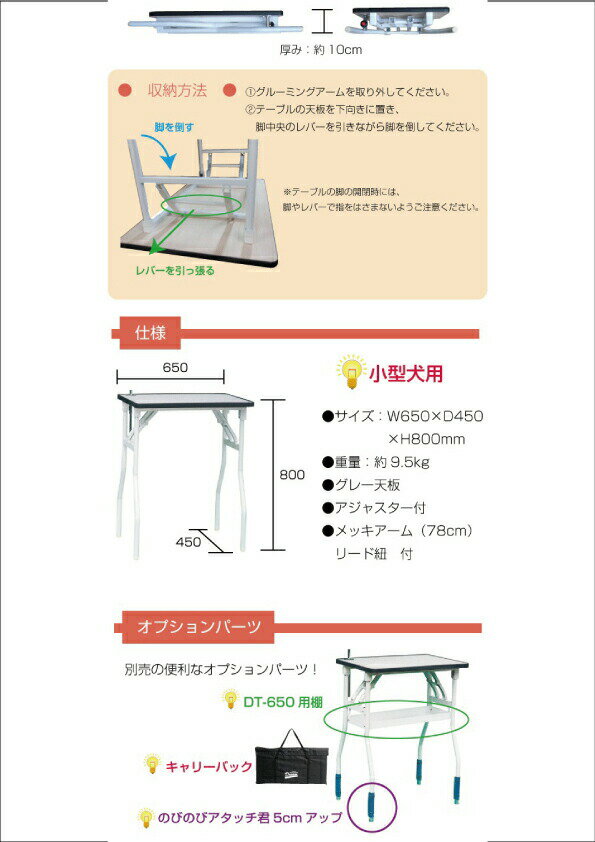 トリミングテーブル トリミング台 ワンタッチテーブル DT-650 ドリーム産業 ペット用 小型犬〜中型犬用 折りたたみ 持ち運びに便利
