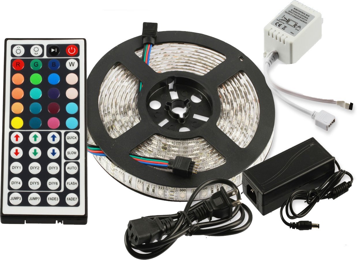 イルミネーション LEDテープライト 5M 150連 5M 300連 SMD5050 5M/150LED 5M/300LED テープ型 正面発光 RGB リモコン操作 カラー選択可能 切断可能 商品仕様 5M/150LED 電圧:DC12V 出力:3A(max) 5M/300LED 電圧:DC12V 出力:5A インテリア照明、ムード照明、間接照明) お好きな長さに調整も可能!はさみ等で簡単に切断できます!取り付けたい場所にあわせて使用できます パッケージ内容: セット内容:本体*1、コントローラ*1、給電ACアダプタ*1、 用途 ジュエリーショップ、バー、ホテル、カラオケ、娯楽やレジャー場所の照明に適して、また車、インテリア、建物の輪郭、橋の装飾等として広くに使用 商品特徴 ※商品はモニターによって色合い等、実物と多少差異がある場合があります。