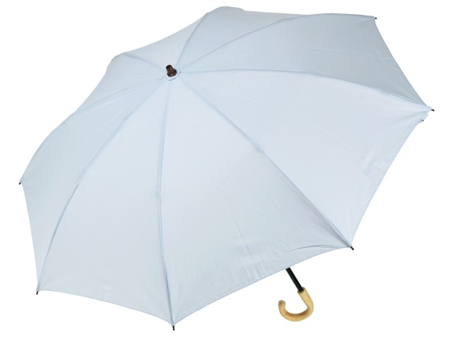 綿麻混 無地 エゴの木小曲手元の晴雨兼用折りたたみ傘(サックスブルー) 日傘 雨傘 かさ工房ワカオ 日本製 Tokyo Made WAKAO レディース 女 UVカット
