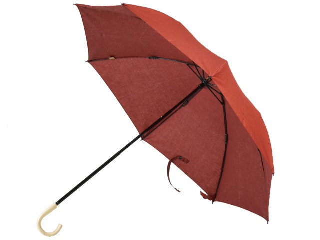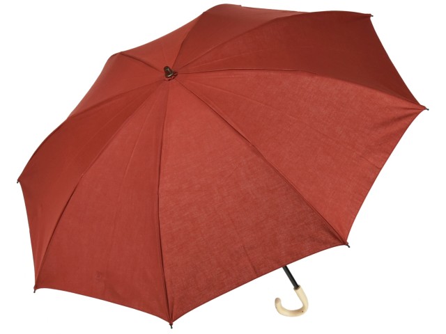 綿麻混 無地 エゴの木小曲手元の晴雨兼用折りたたみ傘(テラコッタ) 日傘 雨傘 かさ工房ワカオ 日本製 Tokyo Made WAKAO レディース 女 UVカット